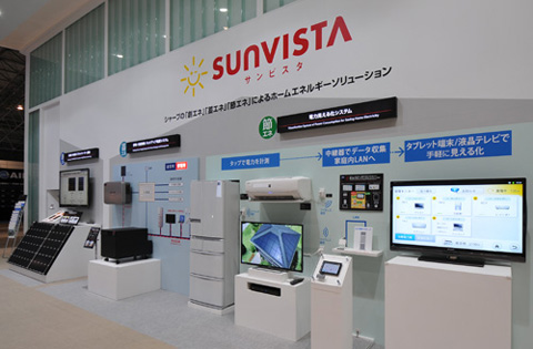 住宅用ソーラーパネル新製品からメガソーラー発電所まで、幅広いソーラーエネルギーソリューションを紹介するとともに、「電力見える化システム」や「停電・災害時用バックアップ電源システム」など、太陽光発電システムと組み合わせた最新のホームエネルギーソリューションを提案しています。