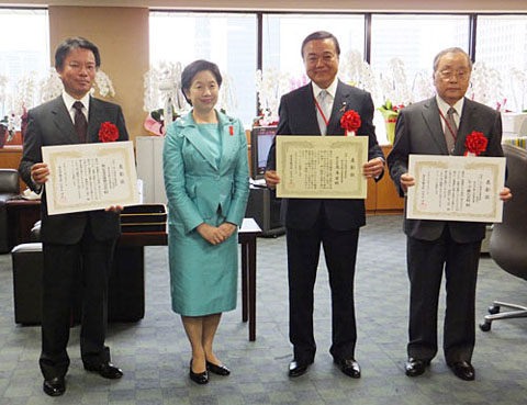 10月11日に厚生労働大臣室で表彰式が行われ、小宮山厚生労働大臣より表彰状を授与されました。