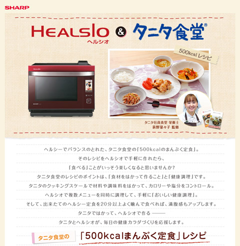 こちらが、コラボウェブサイト「ヘルシオ&タニタ食堂」です。