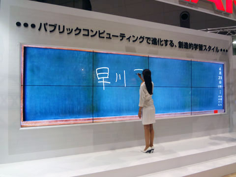 - 60V型液晶を8台使用した大型の電子黒板と、手書き入力できる学習用タブレット端末が連携した次世代の学習環境をデモ実演。シャープが考える「次世代の教室」のあり方を提案します。