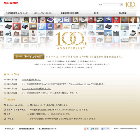 100周年記念サイトをリニューアルし、「シャープ100年史」を公開しました。