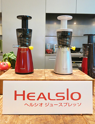 今回発表したスロージューサー「ヘルシオ ジュースプレッソ」<EJ-CP10B>は、スクリューが低速回転(32回転/分)しながらゆっくりと食材を押しつぶす「低速圧縮絞り方式」で、果物や野菜のジュースに加え、かぼちゃスープや大根おろしなどの調理にも利用できます。