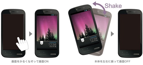 ―はい。電源キーを押さなくてもディスプレイのオン、オフができます。ディスプレイを指で縦方向になぞるだけでスリープ状態から待機画面を表示する「Sweep ON」は、昨年の冬モデルで人気の機能でした。今年の夏モデルでは「Sweep ON」に加えて、端末を左右に振ってスリープ状態に入ることができる「Shake OFF」も搭載しています。