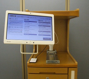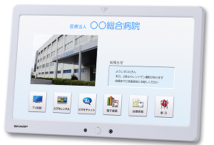 例えば病院では、ベッドにいながらテレビやお好きなビデオを視聴し、電子マネーやICカードで決済を行うこともできます。また、電子カルテや治療履歴を閲覧したり、前面に搭載したカメラを活用したコミュニケーションを行うなど、顧客に応じた提案が可能となるソリューション型テレビです。