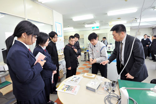 ■生徒さんが4人ずつのグループに分かれて、特選工業の業務を実際に見学。