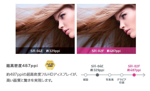 約487ppiの高密度を実現した約4.5インチ フルHD(1920×1080ドット)IGZO液晶ディスプレイを搭載しました。髪の毛一本一本までリアルに表現します。
