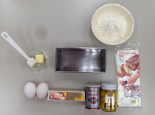 材料(パウンドケーキ型1本分)を用意します。