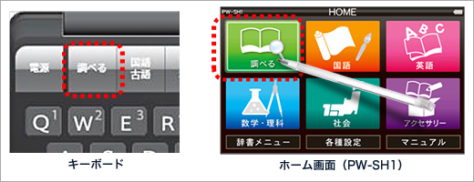 検索するコンテンツや検索方法を意識することなく、画面タッチで次々に切り替えて、知りたいことがすばやく見つけられる「調べる」ボタンを搭載しています。