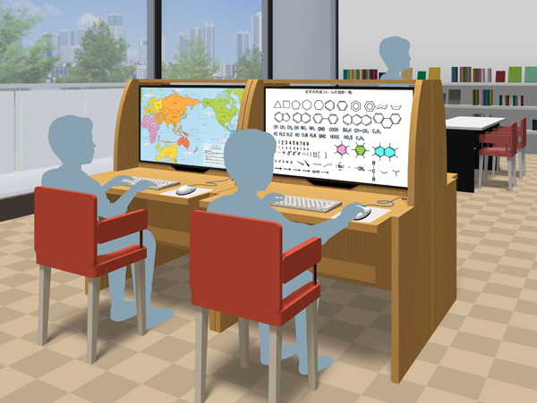 「4K-eDESK」の活躍の場は、図書館だけではありません。例えば4Kで撮影した授業を映すことで、教室で授業を受けているような体験ができます。黒板の小さな文字や先生の表情なども鮮明に見ることができます。