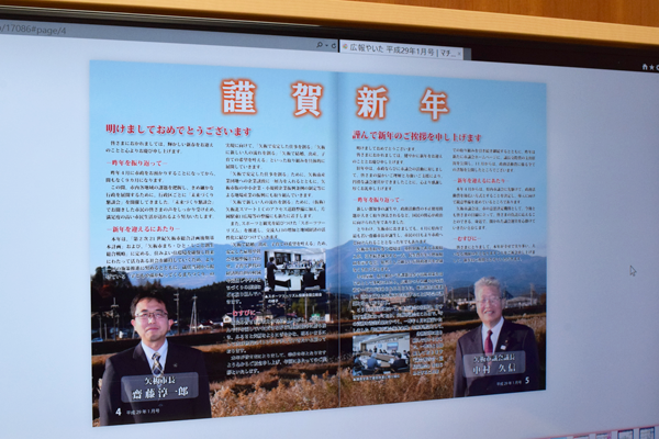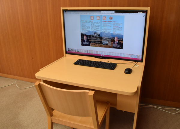 図書館は、地域情報を発信する場でもあります。試験導入にご協力いただく矢板市が毎月発行する「広報やいた」も、大画面でくっきりと見ることができました。