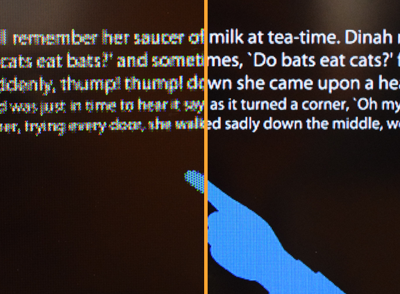 新聞や雑誌などの様々なコンテンツを表示する4K-eDESKでは、高精細であることが「読める」か「読めない」かを左右する大切な要素となります。