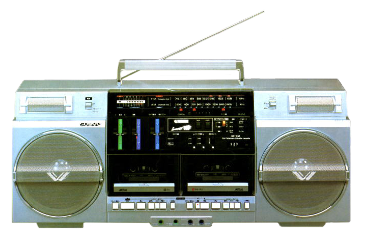 その時代、(当社資料の言葉を借りると)ラジカセの購入者の約7割が中高生などのヤングで占められていました。ヤングのプレイマシンであるラジカセは、音質や機能面の充実とともに、カラフルなコントロールスイッチ、デジタルメーターなど、それまでにないファッション性を盛り込むことで、生活を共にする新しいテープオーディオ時代を拓くものとなりました。