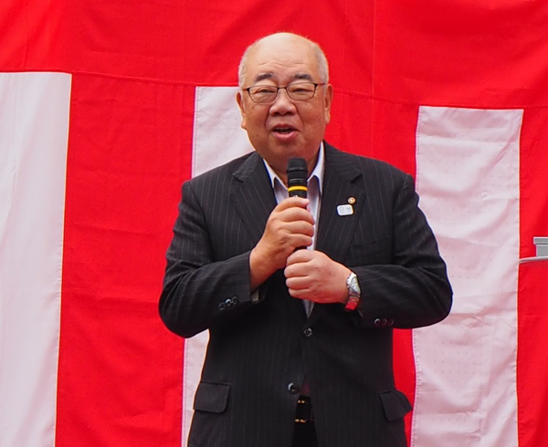 最後に、烏山駅前通り商店街振興組合理事長 桑島 様より、 「世田谷区の中でも、ここ千歳烏山駅は1日の乗降客数が約80,300人と多く、人口もここ3年で21%増加しています。この地に、全国の自治体で初めて設置できたことを嬉しく思います」とのお言葉をいただきました。