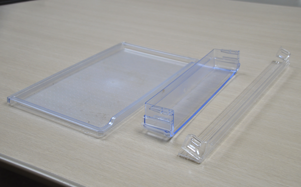 (戸田)2つ目の廃材として、GPPS(汎用ポリスチレン)と呼ばれる冷蔵庫のトレイや棚板などの透明な部品をブレンドします。この材料は、非常に硬く、「剛性」が高い(変形しにくい)のが特長です。