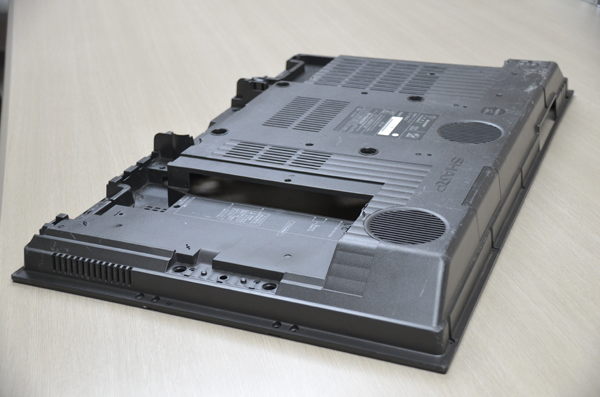 (戸田)特性の異なる2種類の廃材をブレンドし、それぞれの特長を活かしたリサイクル材を開発しました。1つ目の廃材として、液晶テレビのバックキャビネットに使用される難燃HIPSを、今回初めて自己循環型マテリアルリサイクル材として利用しています。バックキャビネットは、外部からの衝撃に耐え、基板などの熱を発生する内部部品が万が一発火しても燃え移らないように、「衝撃強度」と「難燃性」を備えた材料を使っています。