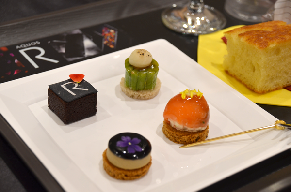 軽食とともに、『AQUOS R』をモチーフにしたケータリングでおもてなし。お腹の音を鳴らしつつ、私は撮影に励みます。