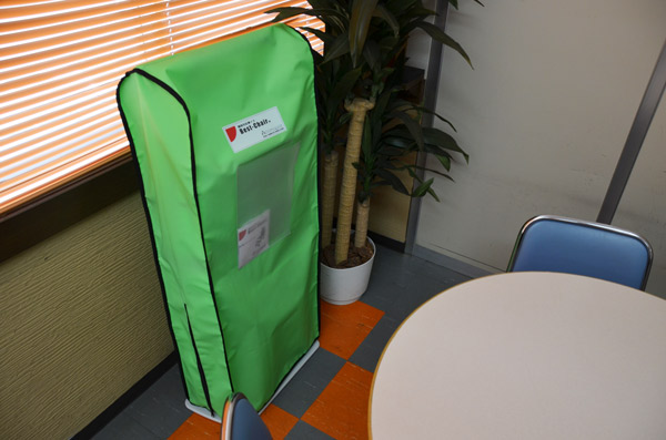 シャープ特選は、1977年に日本で第一号となる特例子会社に認定されました。特例子会社とは、企業が障がい者の雇用を推進する目的で設立した会社のことで、一定の要件を満たした場合、親会社に雇用された労働者として、障がい者の雇用率を算定できます。障がい者が利用しやすいエレベーターやトイレなどの設備が整っていたり、仕事をする上での配慮がなされていたりするため、障がい者が安心して業務に集中でき、個人の能力をより高く発揮する機会を引き出せるのです。例えば階段でも使える車いす。非常時に備え、シャープ特選では各階に設置しています。