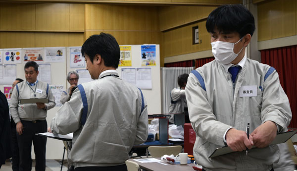 審査員は長くサービス部門で修理に携わってきた社員や、修理に関する研修を担当する社員が務めます。審査員たちも真剣な眼差しで作業を見守ります。