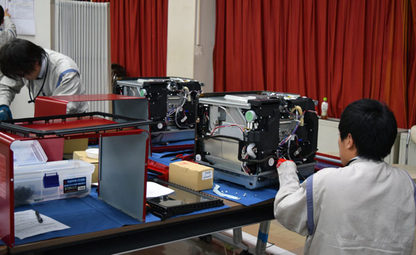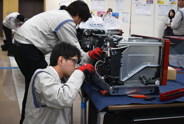 次に1人で行う作業の部。ヘルシオの核となる部品、エンジンユニットの交換を行います。50分の制限時間内に終わらせなければ、減点となります。緊張からか参加者たちの表情は硬いですが、落ち着いて作業を進めていきます。