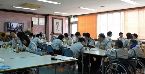 早川創業者は不遇だった子供の頃、近所の全盲の婦人に助けていただいたことから、恩返しの気持ちもあって早川分工場を設立したということです。シャープ特選では、食堂など社員の目に触れるところに創業者の書を掲げているので、創業者の福祉に対する強い思いに日常的に触れることが自然に浸透しています。