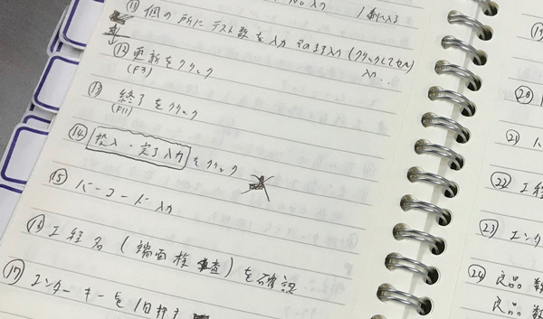作業手順を詳しく記入したノート