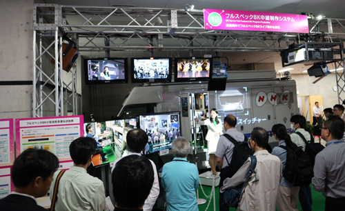 数多くの見学者でにぎわう、フルスペック8K中継制作システムの紹介ブース