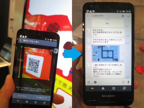 QRコードリーダーで読み込むと店舗のLINEアカウントへ誘導