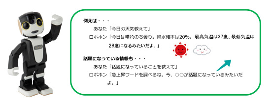 ―ロボホンをネットワークに接続すると、今日の天気やイベント情報、検索数が急上昇したワードなど、今知りたい旬の情報を教えてくれるんですよね。