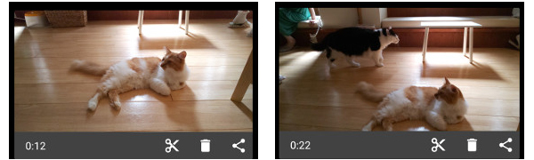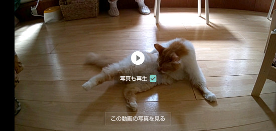 ちなみに、きぃちゃんが顔を上げた写真の前後5秒の動画を切り出してみたところ・・・(下はその動画撮影開始時の画像)。まずは毛繕いを始めたところからスタート。毛繕いを終えて顔を上げ、前足を丸めてふさふさの尻尾を振るご機嫌な様子が収められていました。動画の切り出しは、AIライブシャッターで撮影したところを中心に行われるので、ベストな瞬間をSNSなどに投稿しやすいですね。