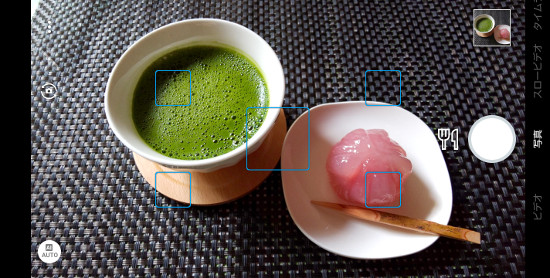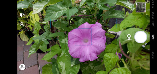カメラを起動後、「写真」モードにして、「AIオート」に切り替えます。撮影対象を認識すると、シャッターボタンの横にその対象を示すアイコンが表示されます。あとはシャッターを押すだけ。