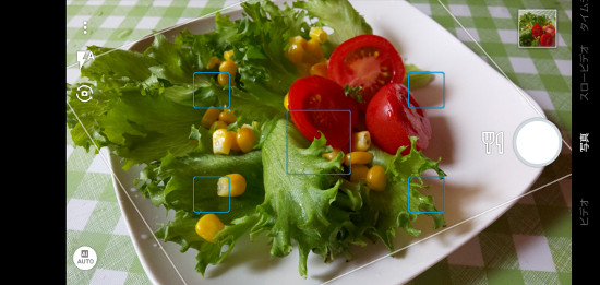次に、「AIオート」機能を試してみました。AIが自動で選んでくれるシーンは全部で9つ(人、犬、猫、料理、花、夕景、花火、QRコード、白板)。