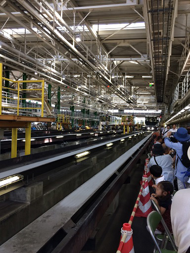 普段なかなか入る機会のない車庫に、ずらりと並んだ六甲ライナー達。いちばん手前が新型車両「3000形」です。かっこいい!現在11編成ある六甲ライナーですが、これから5年かけてすべて「3000形」に置き換える予定だそうです。