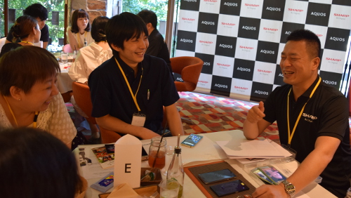 動画専用カメラの開発は、開発担当者自身が愛犬を連れて散歩しているときに、超広角で撮れれば面白い画像になるのではと思ったのがきっかけだったこと、それを実現するために試行錯誤を繰り返したことなど、当事者が語る熱い想いやリアルなエピソードに、オーナーの皆さまは興味津々。また、オーナーの皆さまからも、日頃AQUOSを使用する中で感じている率直な感想をお話しいただきました。