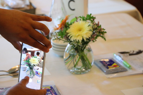 屋外での撮影会終了後、黒田さんより、花や料理を被写体にした「背景ぼかし機能」の使い方や、いつもとひと味違う写真が撮れるスマホの持ち方や構え方など、日頃の撮影にぜひ取り入れてみたい、楽しくて役に立つ撮り方のノウハウを教えていただきました。