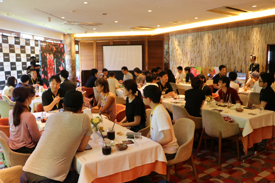ブレイクタイム後の交流会では、当社の開発担当者6名が各テーブルを回り、開発にまつわる裏話を披露したり、オーナーさまからの質問やリクエストに耳を傾けたりして、コミュニケーションを深めました。