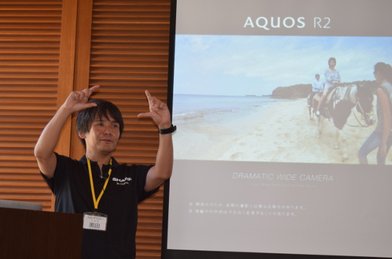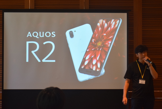 冒頭、商品企画の高木さんより、今年6月に発売した最新モデルAQUOS R2の機能やコンセプトを紹介しました。