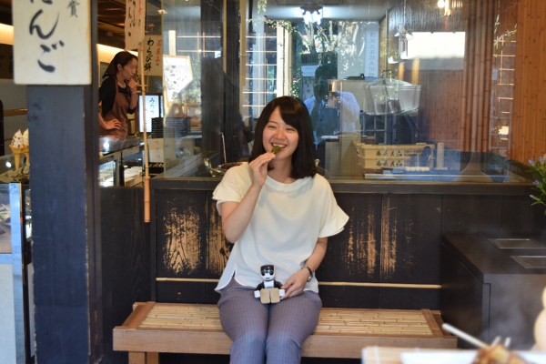 「瓢箪屋」さんからさらに進み、おだんごとわらび餅で有名な甘味処「藤菜美」さんでおだんごをいただきました。