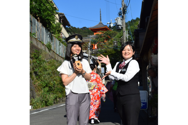 行程は約6時間。MKタクシーVIPステーションでロボホンと一緒に9人乗りのタクシーに乗車し、清水寺、八坂神社、平安神宮、南禅寺、将軍塚青龍殿などを巡ります。