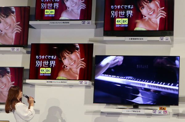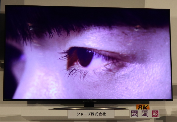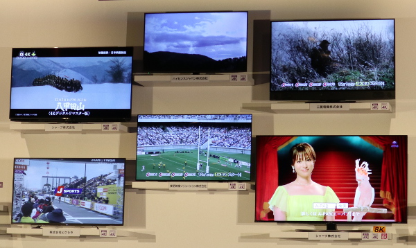 ステージ正面には、各社の4Kチューナー内蔵テレビとともに、当社の8Kチューナー内蔵テレビが展示されていました。