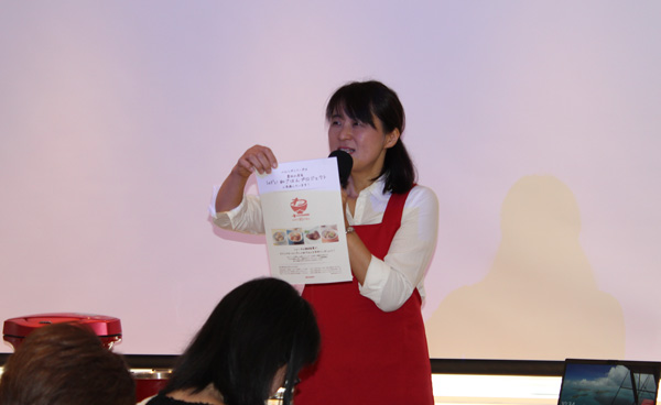次に講師をつとめてくださった料理家の岡本知子さんに、調理の手順などを説明していただきました。岡本さんは、東京で開催しているヘルシオシリーズ体験教室の講師を担当してくださっています。