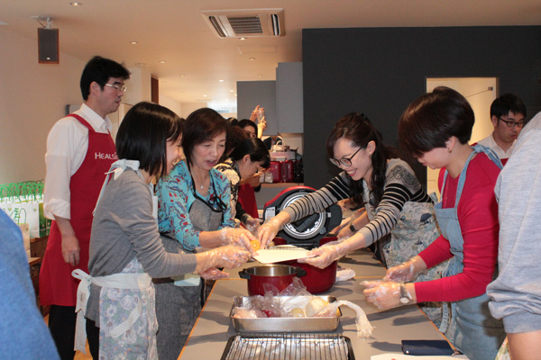 11月7日(水)、東京で開催されたヘルシオ体験教室は、いつもとちょっとちがう雰囲気。今回初めて、株式会社Mizkanさまとコラボした体験教室を開催することになりました。さらにUCCさまにもご参加いただき、たくさんのスタッフでにぎやかです。