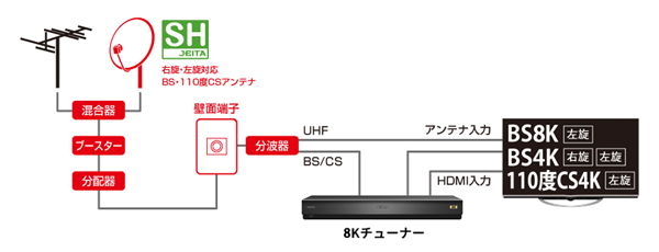 ※ 8Kチューナーでご視聴頂くには、HDMIを4端子搭載する8K対応テレビか8K映像モニターが必要です。