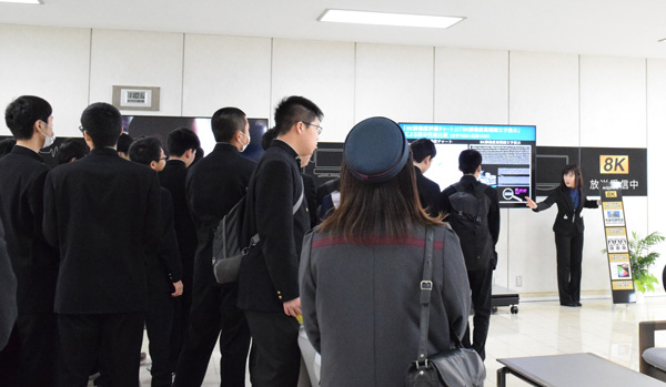 実際に8Kのライブ放送をご覧いただきました。迫力ある映像に、驚きの声をあげる生徒さんも。