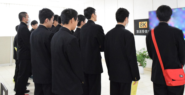 まず8Kについて、シャープミュージアムの担当者から簡単にご説明しました。工業高校の生徒さんだけあって、技術的な説明もすぐにご理解いただけたようです。さすが!