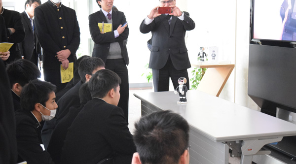 オープンの日、初めてのお客さまは岩手県立水沢工業高等学校電気科の2年生の皆さま。修学旅行で関西方面を訪れ、その途中でシャープミュージアムをご見学くださいました。
