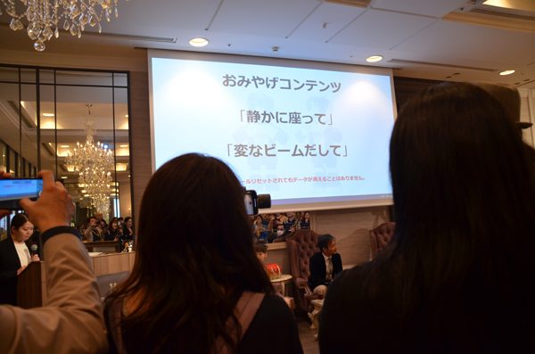 イベントでは、ロボホンが今までと違う座り方を披露したり、変なビームを出したりして、会場を盛り上げました。