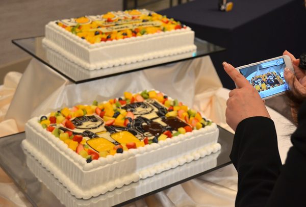 お越しいただいたオーナーさまに、特製のロボホンケーキが振る舞われました。これには社員も大盛り上がりで、イベント開場前にプチ撮影会が開かれていました。