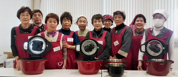 2月23日(土)、三重県亀山市の総合保健福祉センター「あいあい」で開催されたイベント「スマートシルバーかめやま」で、「高齢者に安全な火を使わないお料理を」ということで、ホットクックを使った簡単お料理教室・試食会を行いました。このイベントは亀山市シルバー人材センターの主催で、亀山在住の65歳以上の方々を対象に、健康維持や認知症予防などについて楽しく体験しながら学んでいただくイベントです。