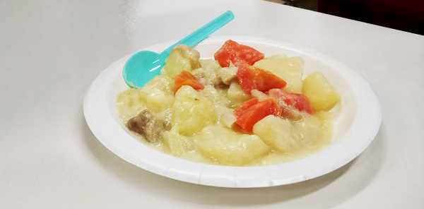 切った材料とバターやコンソメなどの調味料を入れて蓋をしてスイッチオン!・・・おしまい。えっこれだけ!?参加者の皆さまは、驚きの表情。そしてホットクックについて簡単にご説明している間に、クリームシチューのできあがり!さっそく試食していただきました。