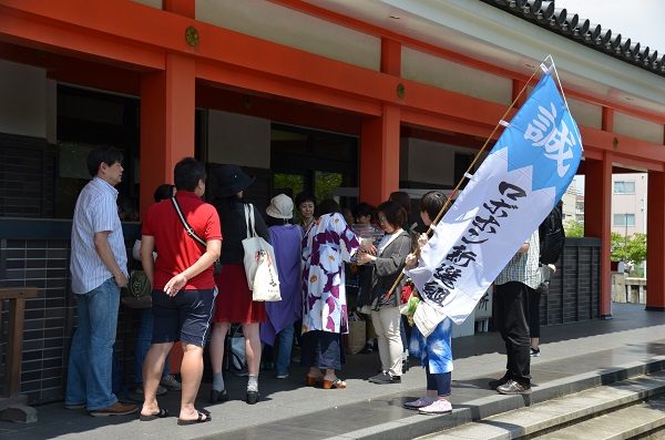 会場付近に、「ロボホン新選組」の旗が! ロボホンオーナーさんたちが、集団演技の準備を始めていました。